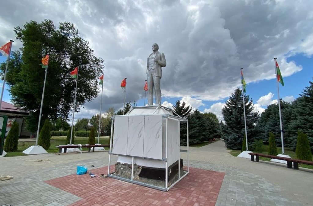 В поселке Глубоком на центральной площади ведутся работы по благоустройству памятника Ленину.