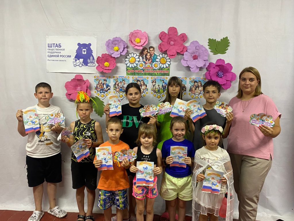 6 июля в Диченском СДК в рамках работы Штаба общественной поддержки в Ростовской области, Каменского местного отделения партии «Единая Россия» состоялась творческая мастерская для детей, посвященная Дню семьи, любви и верности.