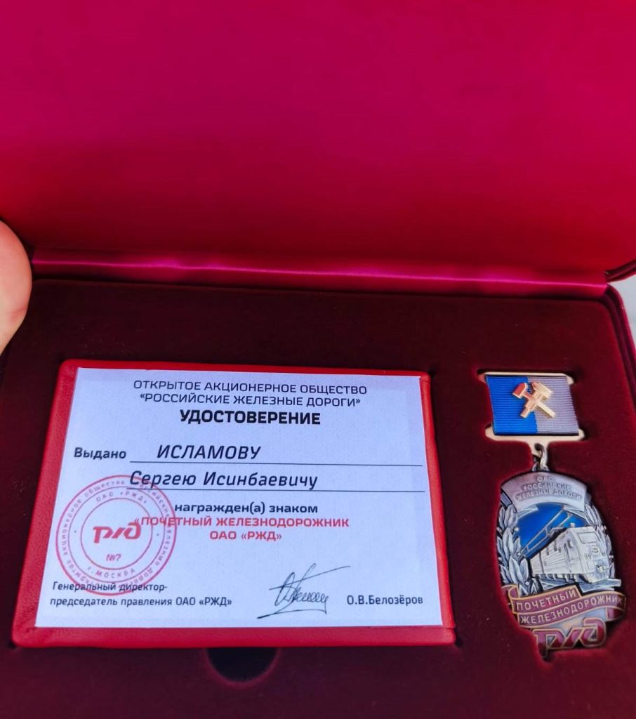 28 июля в Ростове-на-Дону, в здании Управления Северо-Кавказской железной дороги, состоялось торжественное вручение высоких наград. Звания «Почетный железнодорожник ОАО «РЖД» был удостоен наш земляк начальник ПМС-34 Сергей Исламов. Знак Сергею Исинбаевичу вручил начальник СКЖД Сергей Задорин, отметив его значительный вклад в развитие отрасли.