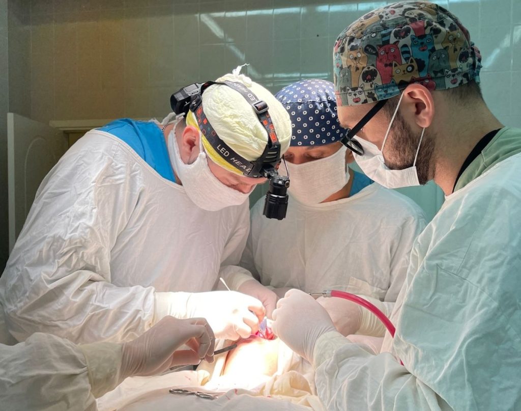 Множественные переломы скуловых костей и челюсти со смещением пациент получил в результате удара копытом лошади. Хирурги провели открытую репозицию и металлоостеосинтез, установив шесть титановых пластин. Операция длилась почти четыре часа и требовала высокой точности.