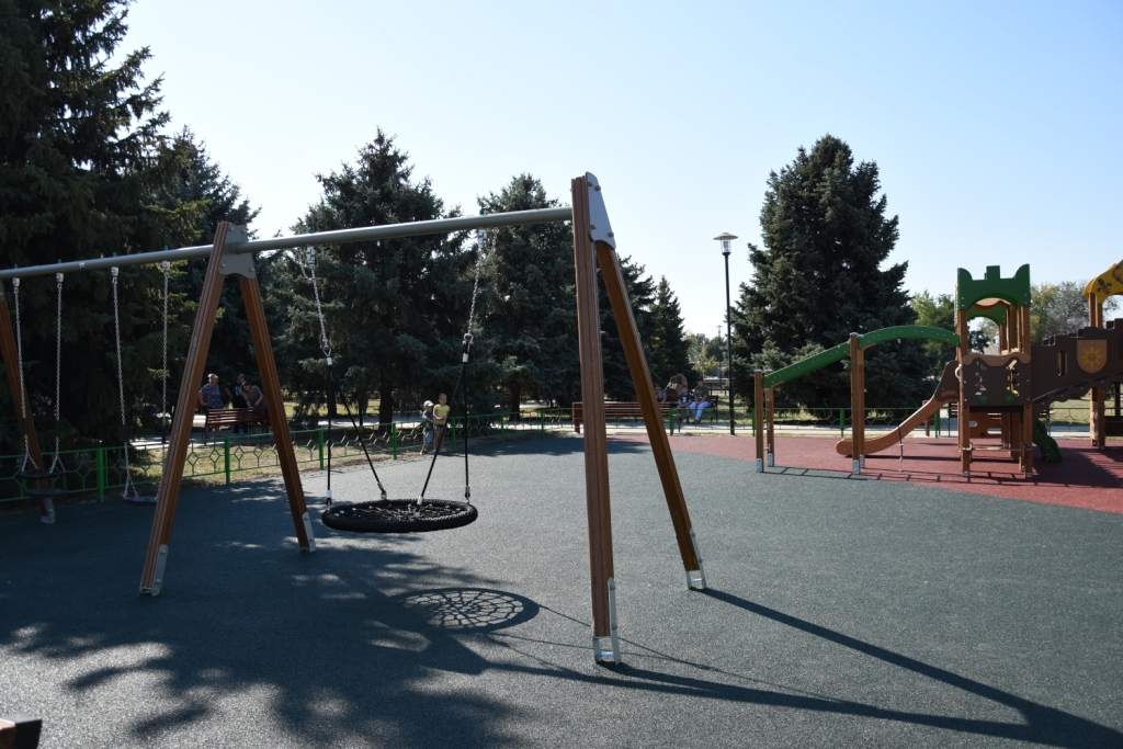 Напомним, что ее строительство было выполнено в рамках губернаторского проекта «Территория детства». Глава Донского региона Юрий Слюсарь поставил перед муниципалитетами задачу создать современные, удобные и интересные для детей места отдыха. На эти цели для Каменского района из бюджета области были выделены около 10 миллионов рублей для строительства двух площадок — в Глубоком и Старой Станице. В обсуждении будущего наполнения площадок участвовали жители, которые смогли высказать свои пожелания. Их учли во время проектирования и строительства. В поселке Глубоком администрация поселения выделила дополнительно из бюджета 2 миллиона рублей на обустройство бетонного основания, установку ограждения и закупку лавочек. Площадку строители возвели на пустом участке парка у спортивной школы «Олимп». На бетонное основание уложили удобное, амортизирующее резиновое покрытие, в центре установили большой игровой комплекс с горками, лестницами, канатами. Отдельно смонтировали качели, рассчитанные на разный вес, включая любимую многими качель-гнездо. Еще один интересный объект — скалодром-додекаэдр, на котором ребенок может упражняться в ловкости. Для родителей, бабушек-дедушек предусмотрели лавочки. Вокруг площадки установили невысокое ограждение.