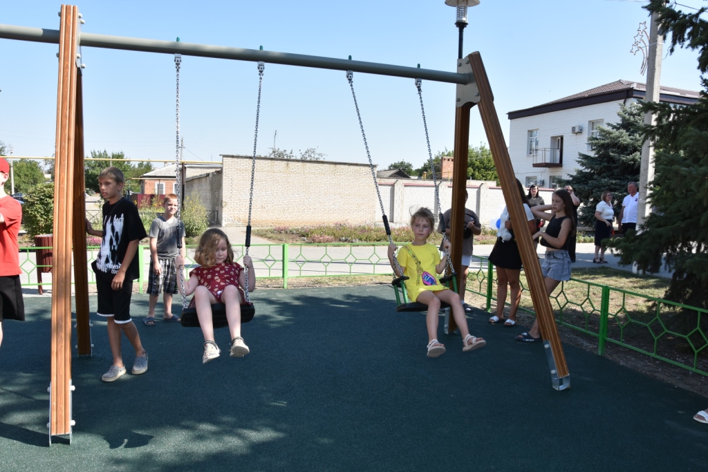 Право перерезать символическую красную ленту предоставили Владимиру Савину, Ольге Бородачевой и воспитанникам детского сада «Тополек». После этого дети смогли сами оценить обновку. Дважды их приглашать не пришлось: веселый гомон и радостный смех наполнил площадку.