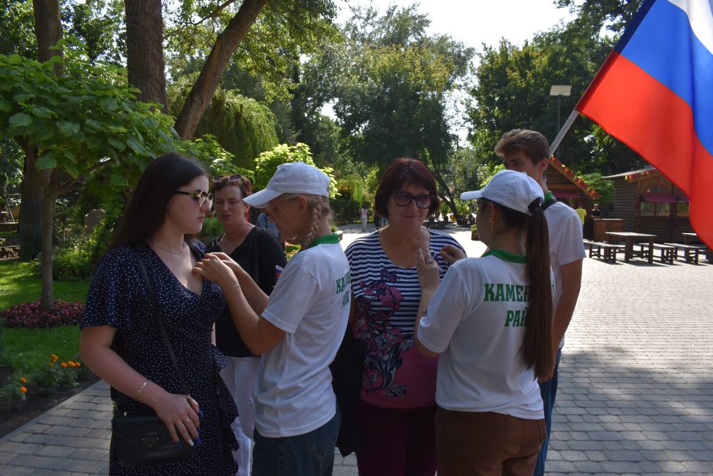 В день празднования флага Российской Федерации в парке «Лога» хутора Старая Станица прошла акция «Три цвета моей страны», организованная специалистами и волонтерами районного Дома культуры совместно с представителями «Молодой гвардии» Каменского района и активистами местного отделения Всероссийского общественного движения «Волонтёры культуры».