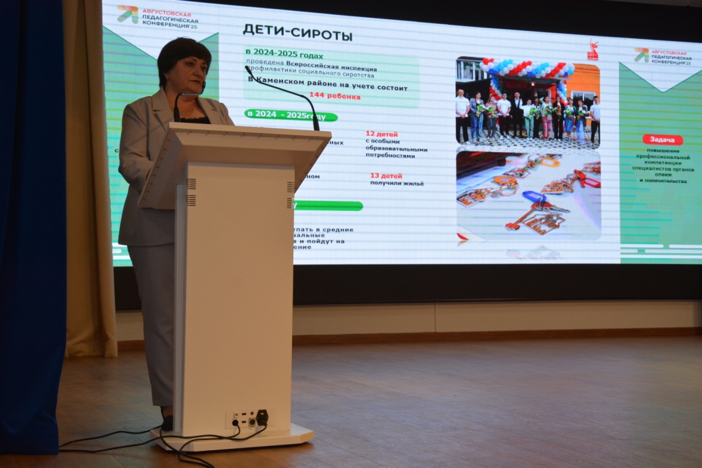 Пленарную часть открыла заместитель главы администрации Каменского района Антонина Бесчетнова. Она отметила, что за 2025 год из бюджета Каменского района на содержание муниципальных образовательных учреждений было выделено значительное финансирование. К началу нового учебного года направлено 37,3 млн рублей.