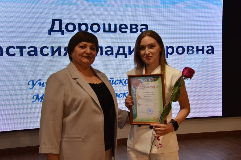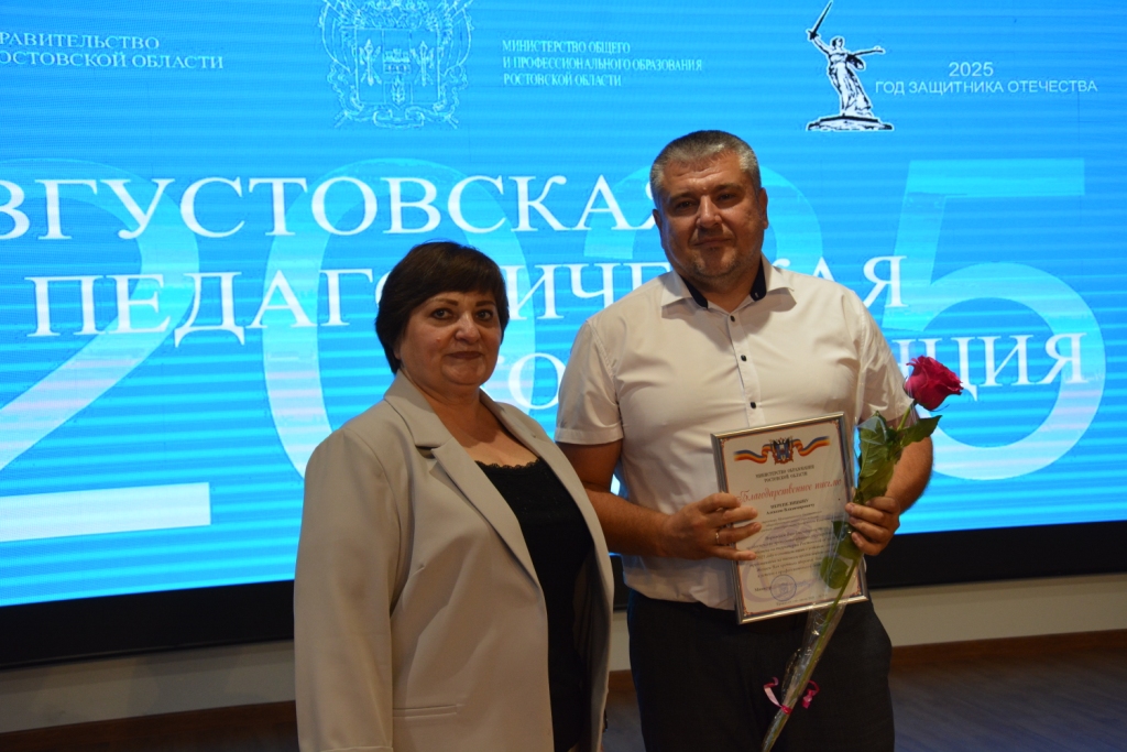 Важной частью мероприятия стала церемония награждения. Званием «Почетный работник сферы образования РФ» отмечены учитель физкультуры Волченской школы Роман Любицкий, учитель русского языка Вишневецкой школы Виктория Погребнова, учитель начальных классов Самбуровской школы Татьяна Камбулова, учитель биологии Гусевской школы Татьяна Карпова, учитель математики Груциновской школы Галина Камбулова, учитель истории Старостаничной школы Татьяна Сенюшкина, учитель математики Васильевской школы Татьяна Лаврухина и учитель начальных классов Старостаничной школы Наталья Шаповалова. Почетной грамотой Минпросвещения РФ награждены директор Плешаковской школы Алевтина Чеботарева и замдиректора Глубокинской школы №32 Надежда Мельникова.