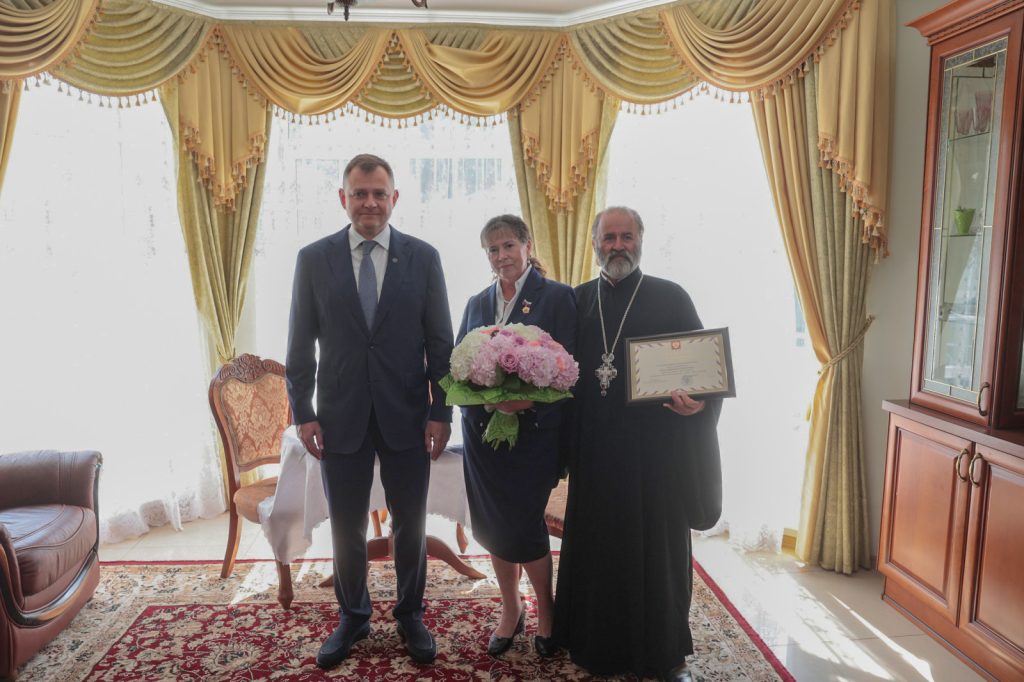 Присоединяюсь к поздравлениям со стороны Президента и от чистого сердца, от лица всех дончан, всех 4 миллионов жителей региона поздравляю с этой замечательной наградой. Спасибо за Ваш большой материнский подвиг, это большой труд – у вас крепкая, большая семья», — обратился Юрий Слюсарь к Надежде Осяк.