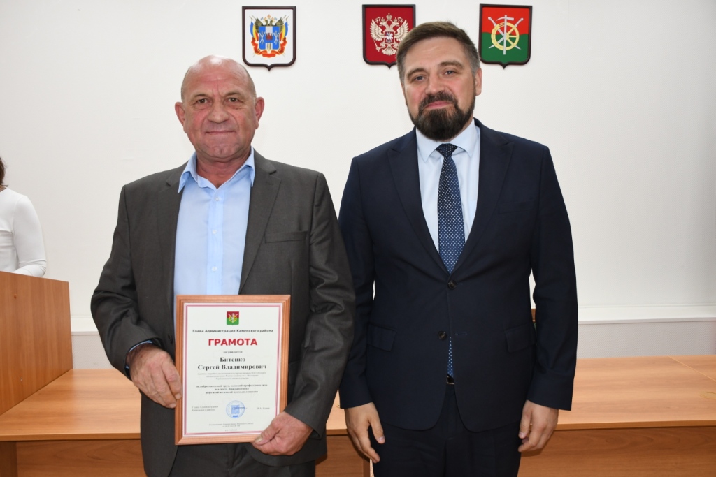 Грамотами главы администрации Каменского района за многолетний и добросовестный труд, профессионализм награждены контролер газового хозяйства абонентского участка в г. Каменске-Шахтинском ООО «Газпром межрегионгаз Ростов-на-Дону» Анна Морозова, начальник линейно-эксплуатационной службы филиала Каменск-Шахтинского линейного производственного управления магистральных газопроводов ООО «Газпром трансгаз Краснодар» Юрий Дмитриенко и диспетчер диспетчерской службы этого предприятия Дмитрий Данилов, слесарь по эксплуатации и ремонту подземных газопроводов в газовом хозяйстве филиала ПАО «Газпром газораспределение Ростов-на-Дону» в г. Миллерово Глубокинского газового участка Алексей Адамов и водитель аварийно-диспетчерского участка этого предприятия Сергей Битенко.