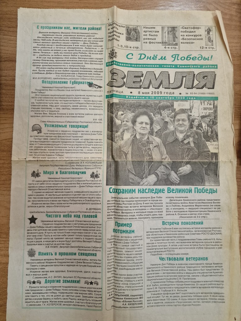 – В нашем семейном архиве хранится много экземпляров газеты «Земля». Так получилось, что многое из истории нашей семьи осталось на страницах газеты, получается, история района и моей семьи тесно переплелись. Статьи о моих родных, поздравления учеников, выпускные детей – все это теплые воспоминания, ценные и важные моменты жизни. Я храню статьи о моей маме Любови Андреевне Маринченко. Она много лет работала учителем математики в Глубокинской школе №1, была организатором, коммунистом, членом райкома партии. О судьбе мамы вышла статья «Молодость, опаленная войной». После выхода на пенсию мама продолжала вести активную общественную жизнь – пела в хоре «Ветеран», была членом Совета ветеранов, ее фото часто попадало на страницы газеты «Земля». Мой папа, Николай Федорович, работал на железной дороге, потом по состоянию здоровья ушел и благодаря маме стал педагогом. Работал в школе учителем труда, вел в Доме пионеров кружки, был мастером на все руки. Поэтому в моем архиве много вырезок, посвященных Дому детского творчества.