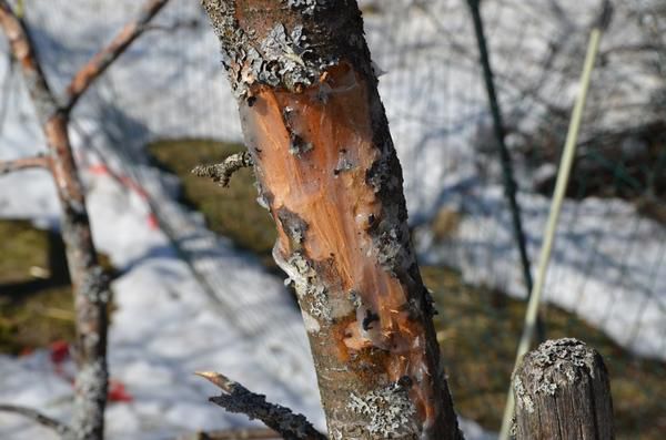 Особое внимание следует уделить низко расположенным местам прививок, особенно у молодых и недавно привитых растений, а также у теплолюбивых сортов косточковых культур.