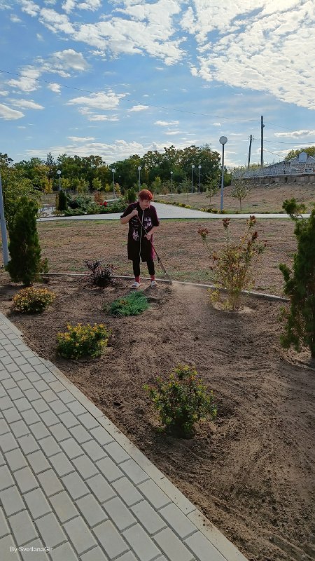 В этот солнечный осенний день участники с энтузиазмом принялись за работу. Прополка кустов, включая можжевельники, и тщательная обработка клумб стали основными задачами. Каждый из участников активно удалял сорняки и ухаживал за растениями, что помогло сделать территорию более ухоженной и здоровой. Поливка растений была особенно важной, ведь под тёплыми лучами осеннего солнца они нуждались в дополнительной влаге.