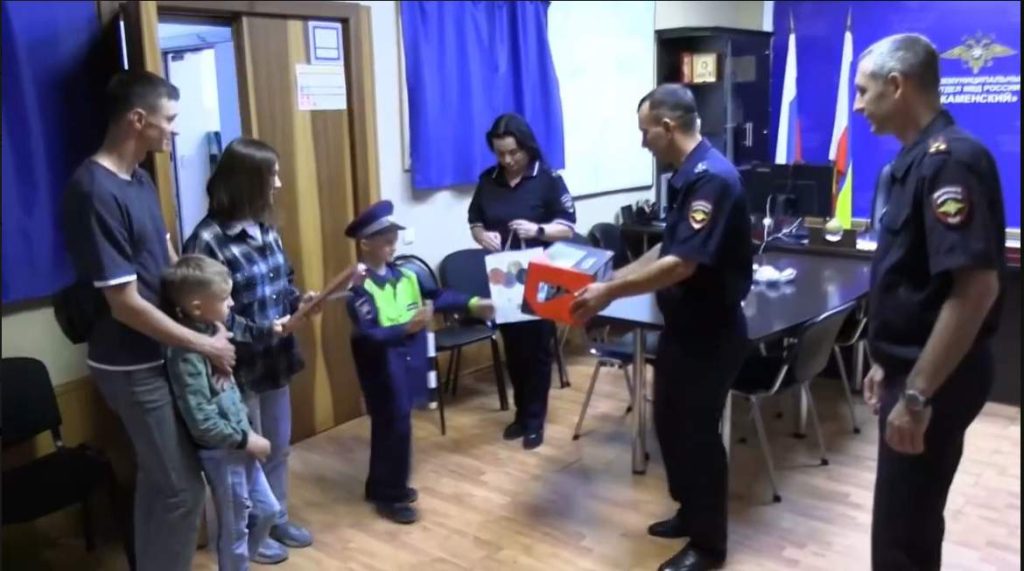 А пока в подарок Егор получил полицейскую машинку на пульте управления, билет в цирк и сладости. Не остались без внимания и родители. Им полковник полиции вручил благодарственное письмо за прекрасное воспитание детей.
