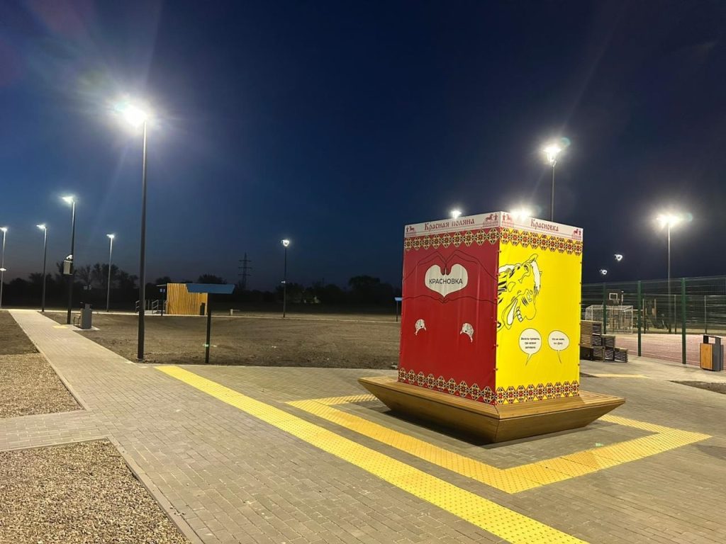 Как сообщает отдел жизнеобеспечения администрации района, технические работы на объекте благоустройства завершены на 100%. Бывший пустырь не узнать: здесь появились детские площадки для разных возрастов, универсальная спортивная площадка для командных видов спорта с ограждением и трибунами рядом, площадка для массовых мероприятий со сценой и зрительными местами, площадка для отдыха с качелями, спортплощадка для воркаута с мягким резиновым покрытием. Все объекты объединены сетью дорожек с навигационными указателями, установлены скамьи, урны, освещение и видеонаблюдение. Также построен модульный туалет, предусмотренный в том числе для людей с ограниченными возможностями.