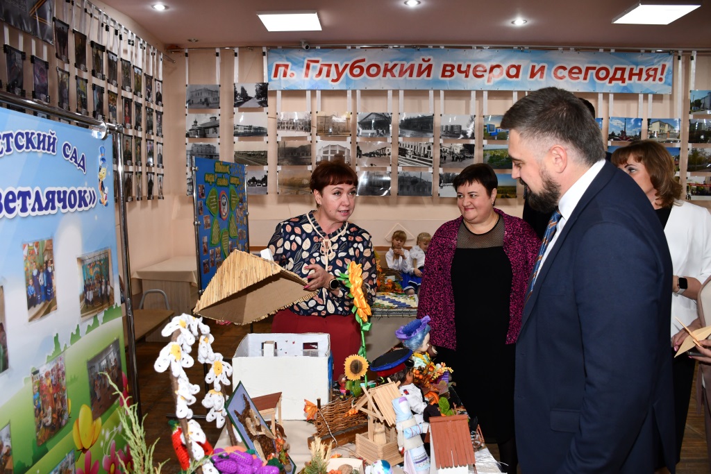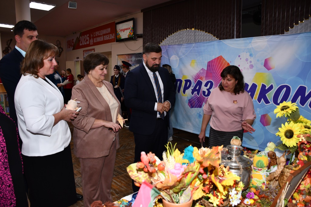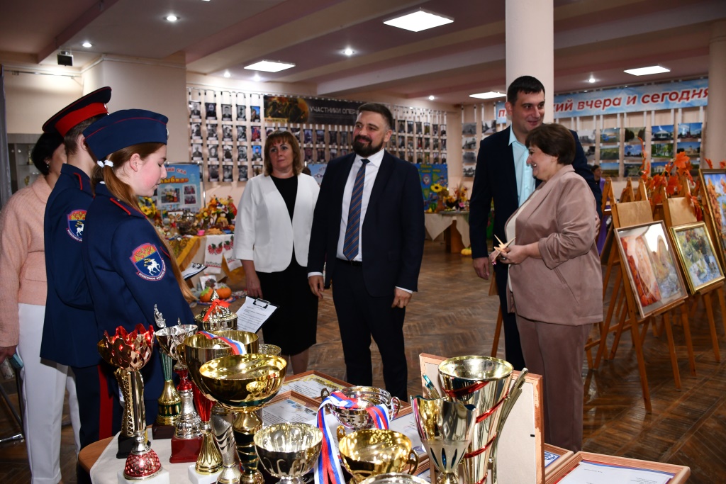 Особый интерес у гостей праздника вызвала развернутая в фойе выставка достижений образовательных учреждений района. Ее с большим вниманием осмотрели глава администрации Каменского района Владимир Савин, его заместитель Алла Гинетова и начальник отдела образования Оксана Кандалова. Владимир Анатольевич высоко оценил представленные работы и особо отметил, как бережно в районе сохраняются и передаются молодому поколению самобытные традиции Донского казачества, народные ремесла и праздники, что является важной частью воспитания юных жителей Каменского района.