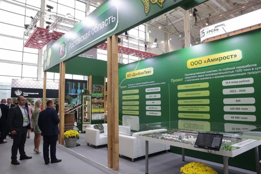 Три биотехнологических проекта предполагают общий объем инвестиций около 74 млрд рублей. В Азове компания «Амирост» создаст новый комплекс по переработке кукурузного зерна мощностью 1250 тонн в сутки с инвестициями 34,6 млрд рублей. Завод будет производить крахмал, декстрозу и другие продукты.
