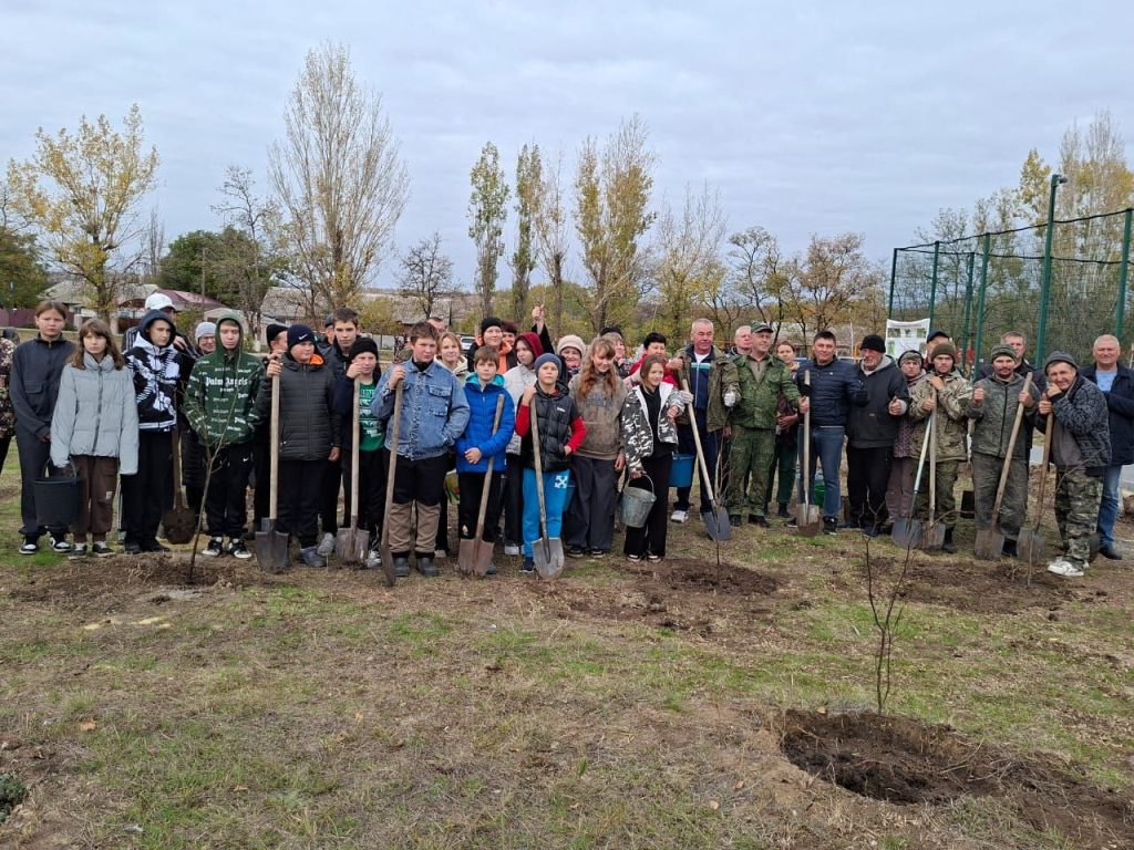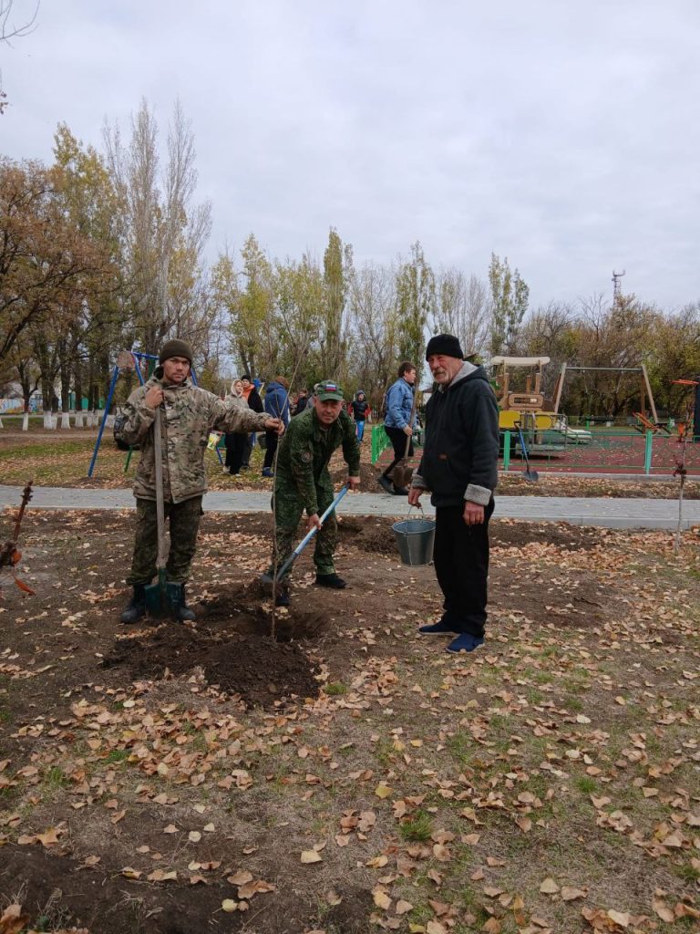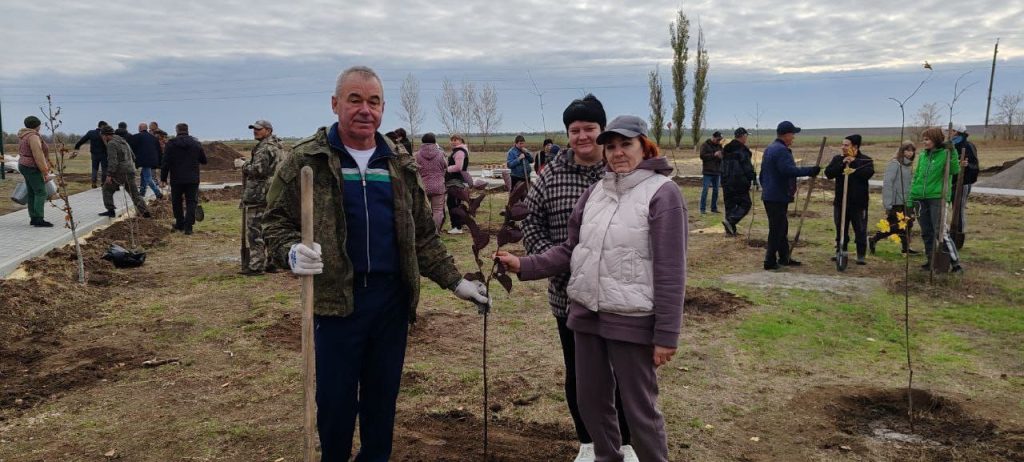 Особое внимание заслуживает участие в акции Михаила Сацута, участника специальной военной операции. Он пришёл на мероприятие с сыном и отцом, и вместе они посадили первое дерево в честь всех участников СВО Груциновского сельского поселения.