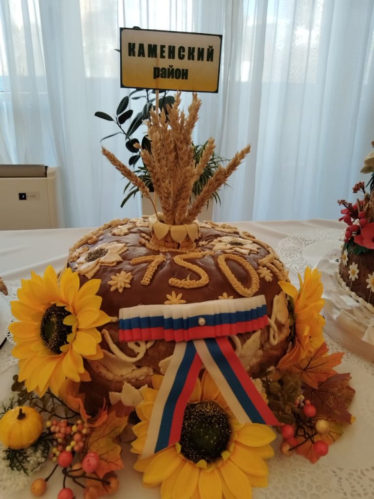 Каменский район представил на суд жюри и гостей праздника великолепный каравай, который не просто радует глаз искусной отделкой, но и имеет глубокий символический смысл. Он олицетворяет собой результат тяжелого и благородного труда наших хлеборобов – валовой намолот зерна в 150 тысяч тонн. Эта впечатляющая цифра – настоящий повод для гордости и весомый вклад аграриев Каменского района в общую зерновую копилку Донского края.
