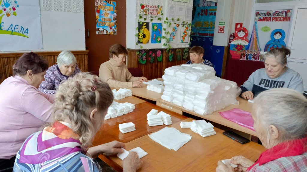1 ноября в рамках Всероссийской акции «Россия – семья семей» активисты волонтерского движения «По зову сердца», работники культуры и неравнодушные жители хутора собрались на Час добрых дел «Твори добро. Твори во благо». Вместе они плели маскировочные сети, которые помогут защитить наших солдат на передовой.