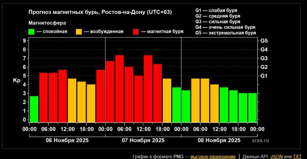 Напоминаем, что магнитные бури могут вызывать ухудшение самочувствия, головную боль, бессонницу, перепады давления. Также они способны провоцировать сбои в работе навигационных и энергетических систем.