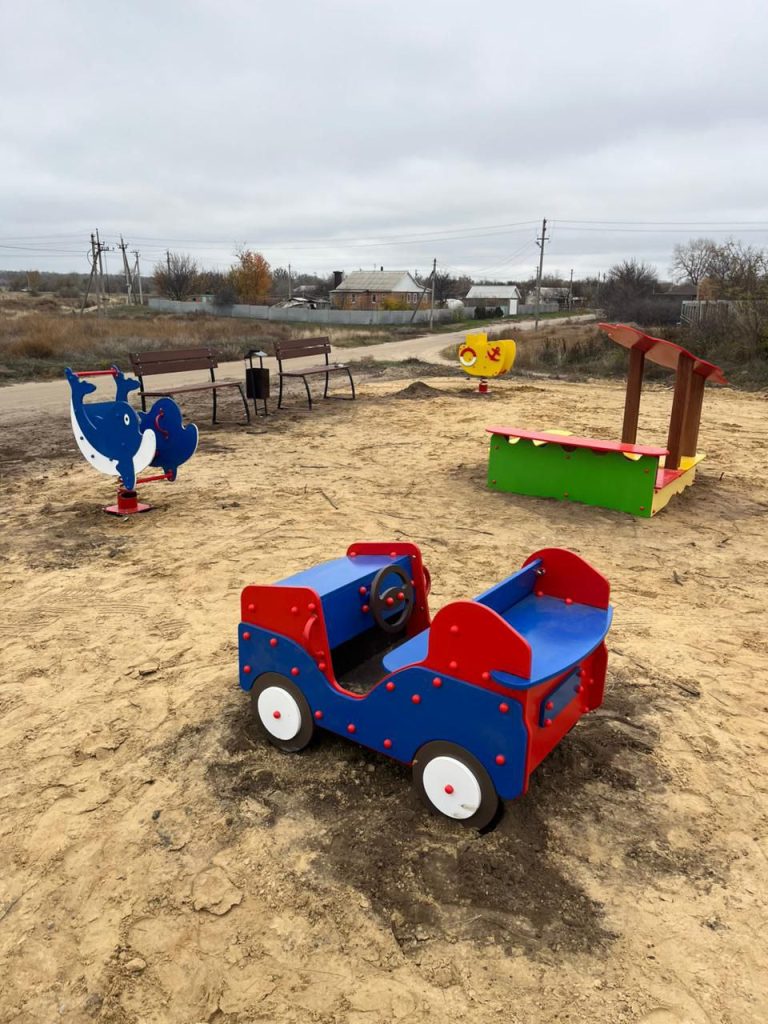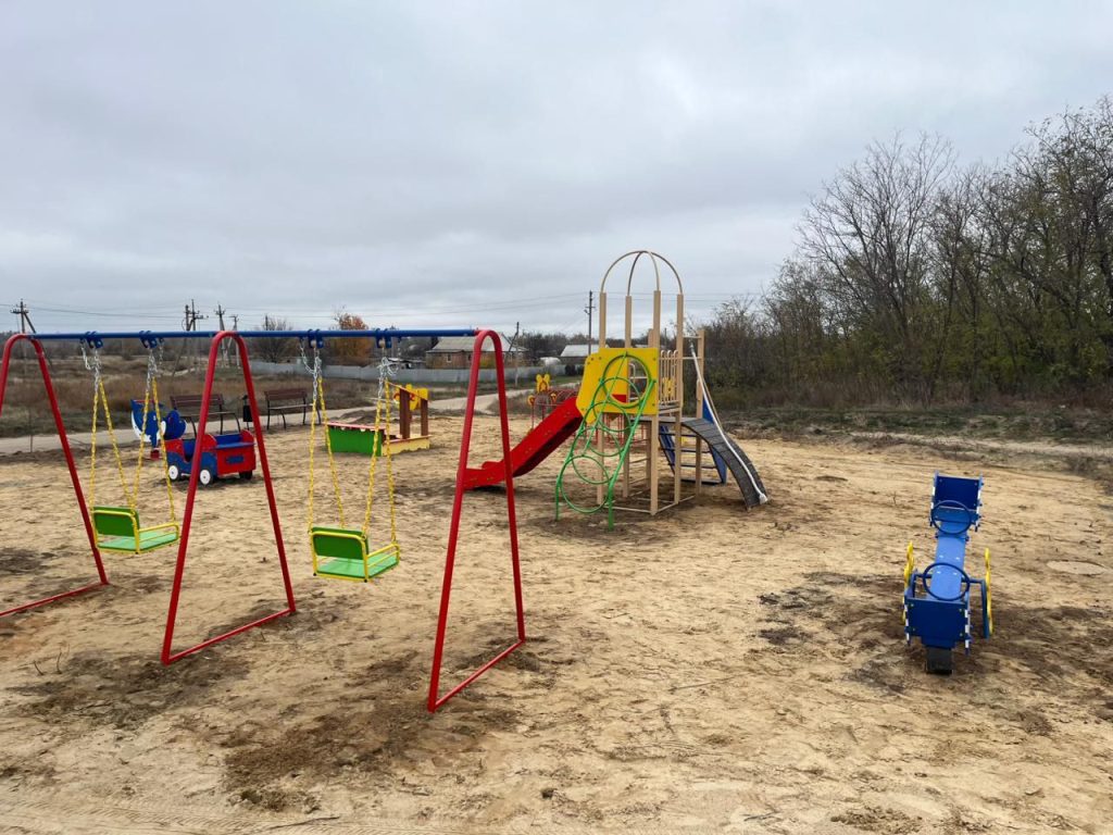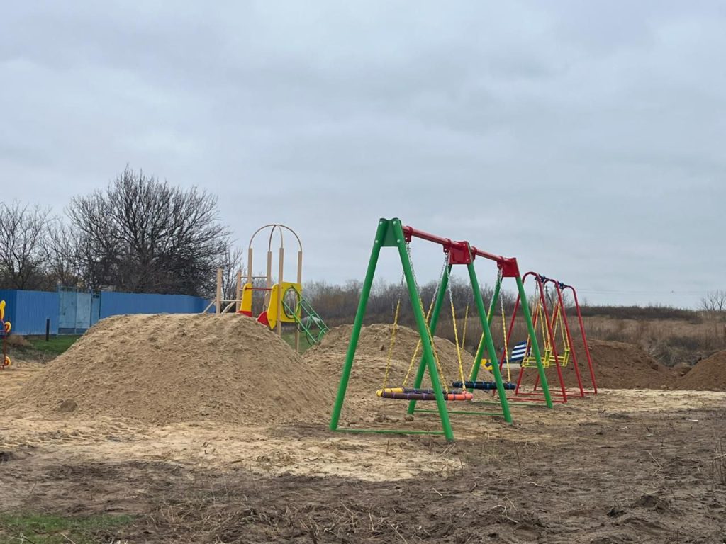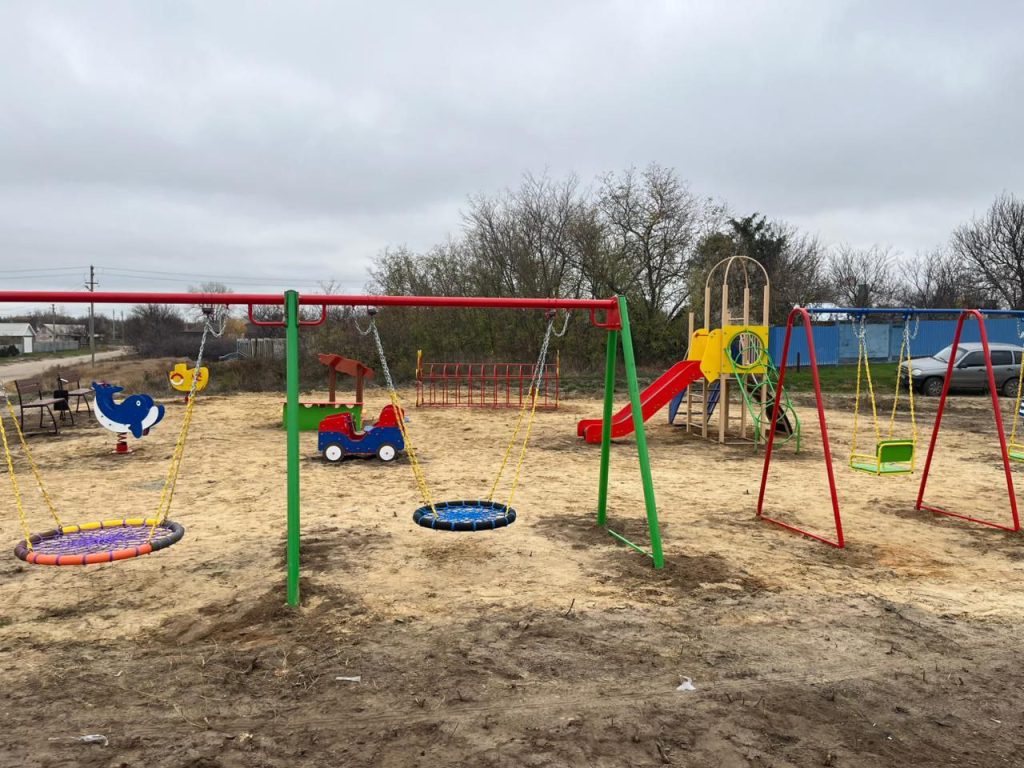В хуторе Филиппенкове появилась новая детская игровая площадка. Работы по ее установке полностью завершены, включая завоз песка для безопасного покрытия.