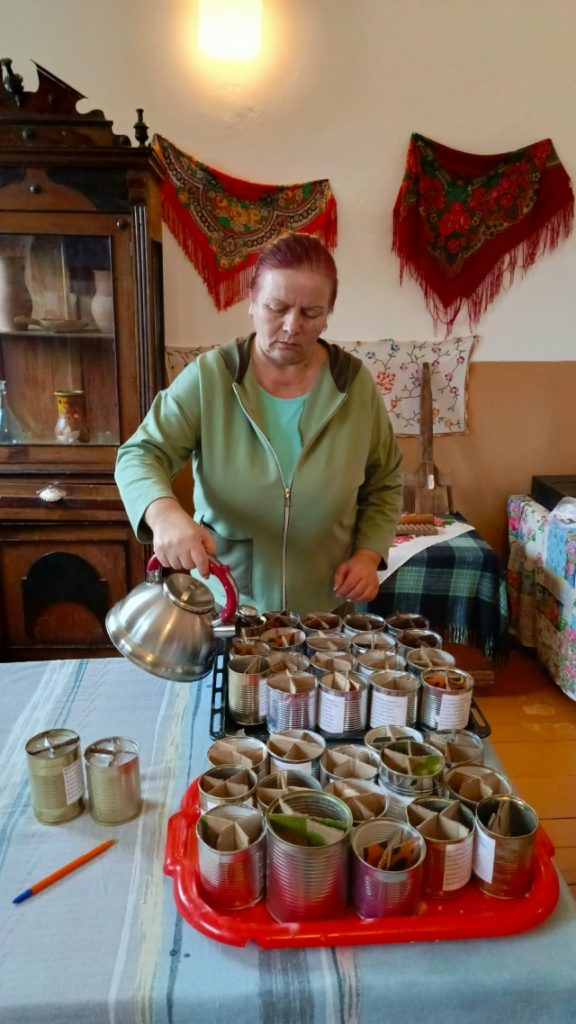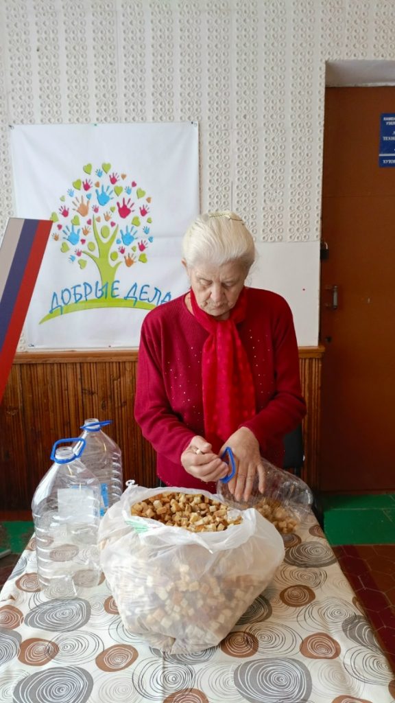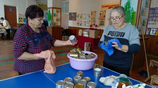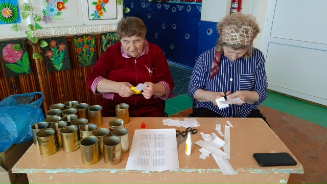 На следующий день, 15 ноября, в рамках региональной программы «#МЫВМЕСТЕ – месяц добрых дел», при поддержке Штаба общественной поддержки Ростовской области и Каменского отделения партии «Единая Россия», в том же СДК прошла патриотическая акция «Твори добро. Твори во благо». Женщины активно готовили жестяные банки, наклеивали этикетки, заливали свечи и расфасовывали сухарики. К тому же, они занимались засолкой сала с чесноком и душистым перцем.