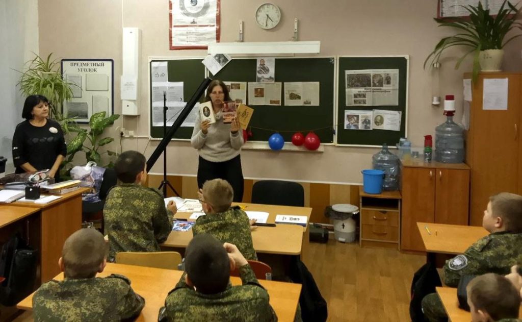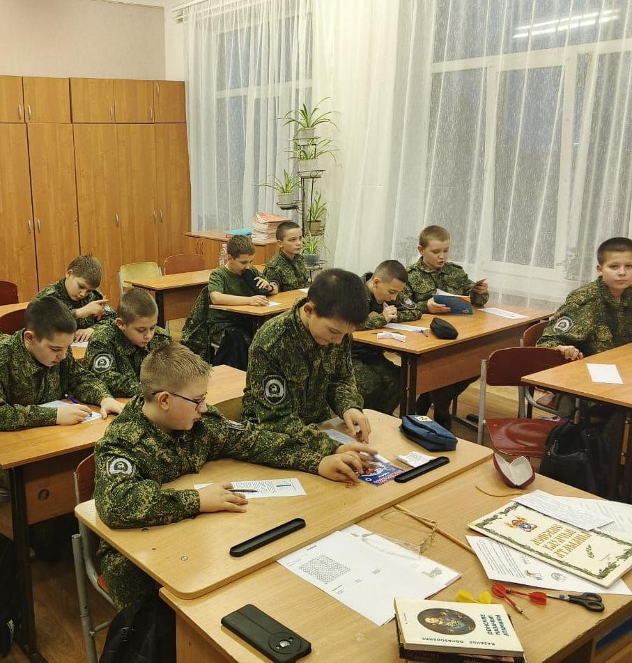 В Каменском генерала Ф. П. Денисова казачьем кадетском корпусе прошел информационный час «Без атамана казак — сирота». Мероприятие для пятиклассников организовала заведующая Плетняковским отделом Межпоселенческой центральной библиотеки Ольга Хлус в рамках проекта «Казак бережет честь и шашку смолоду».