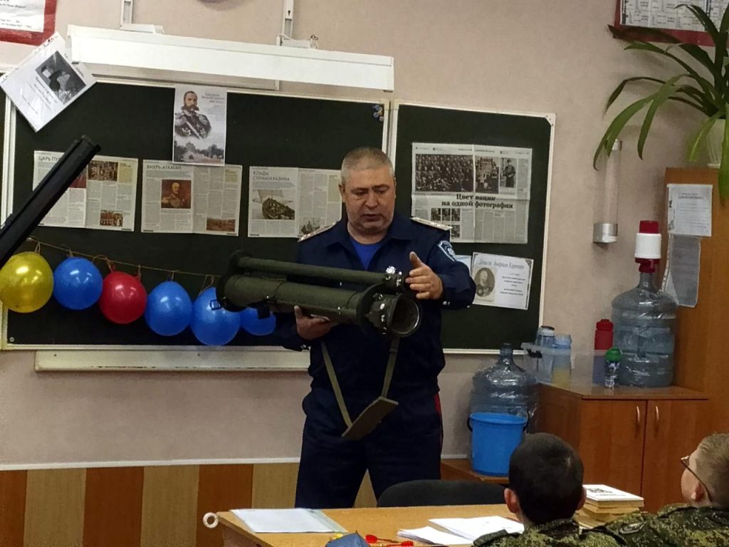 Особым гостем мероприятия стал атаман окружной станицы Каменской подъесаул Дмитрий Хлус. Он рассказал кадетам об атамане Я. П. Бакланове и своем визите в казачий штурмовой отряд «Шторм» 102 полка 150 дивизии, носящей имя этого генерала и выполняющей задачи в зоне СВО. Дмитрий Сергеевич также познакомил ребят с современным боевым оружием – гранатометами.