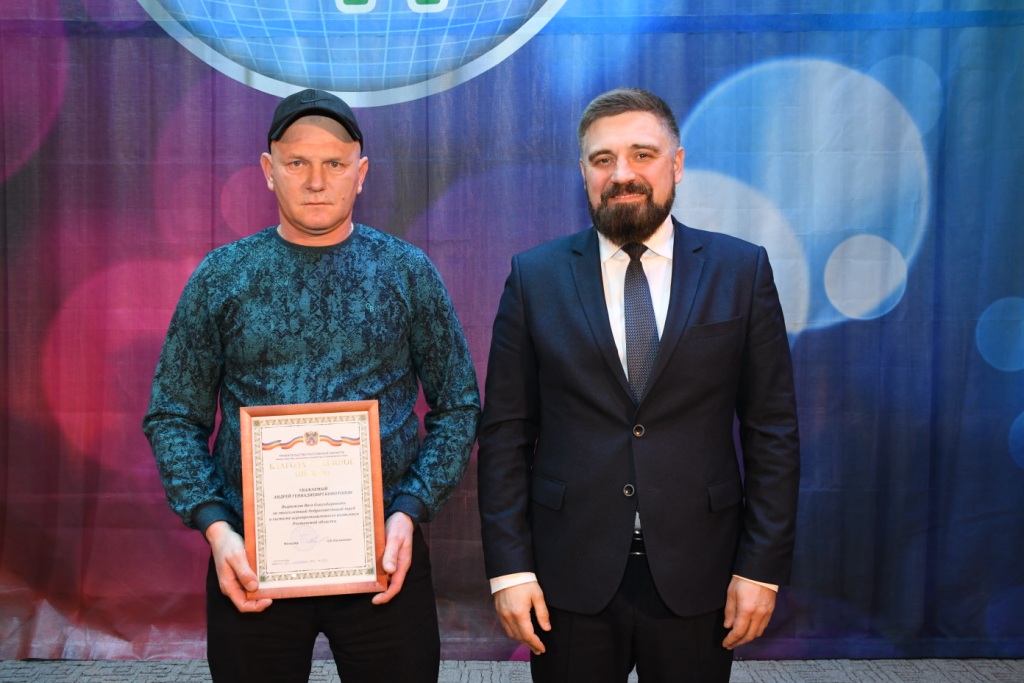 Затем состоялась церемония награждения. Приказом Министерства сельского хозяйства Российской Федерации за многолетний добросовестный труд в системе агропромышленного комплекса объявлена благодарность лаборанту Глубокинского филиала АО «Астон» Татьяне Воротилиной и трактористу-машинисту «СПК «Родная земля» Руслану Котельникову. Звание «Лучший работник агропромышленного комплекса»присвоено трактористу-машинисту ООО «СПК Родная земля» Николаю Кулинич. Приказом министерства сельского хозяйства и продовольствия Ростовской области за многолетний добросовестный труд в системе агропромышленного комплекса и в связи с профессиональным праздником – Днем работника сельского хозяйства и перерабатывающей промышленности – благодарственным письмом поощрены тракторист-машинист агрофирмы «Респект» Андрей Конотопов, тракторист колхоза «Березовый» Алексей Малиновский, мастер смены Глубокинского филиала АО «Астон» Галина Неповинных, тракторист агрофирмы «Деметра» Виктор Попов, водитель агрофирмы «Респект» Сергей Темников, индивидуальный предприниматель, глава крестьянского (фермерского) хозяйства Анатолий Трушко.
