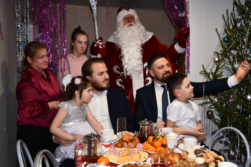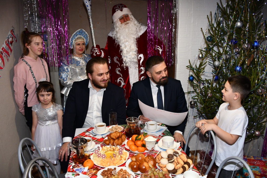 Завершающим аккордом этого дня стало появление настоящих новогодних волшебников. Вместе с Владимиром Савиным и Александром Дегтяревым в гости к детям пришли Дед Мороз и Снегурочка. Они подарили ребятам настоящую сказку: вместе пели новогодние песни, танцевали, читали праздничные стихи. А кульминацией этого теплого общения стала совместная творческая работа – яркая новогодняя аппликация, которую маленький Леша с особым трепетом подарил Владимиру Анатольевичув знак благодарности и на память о встрече.