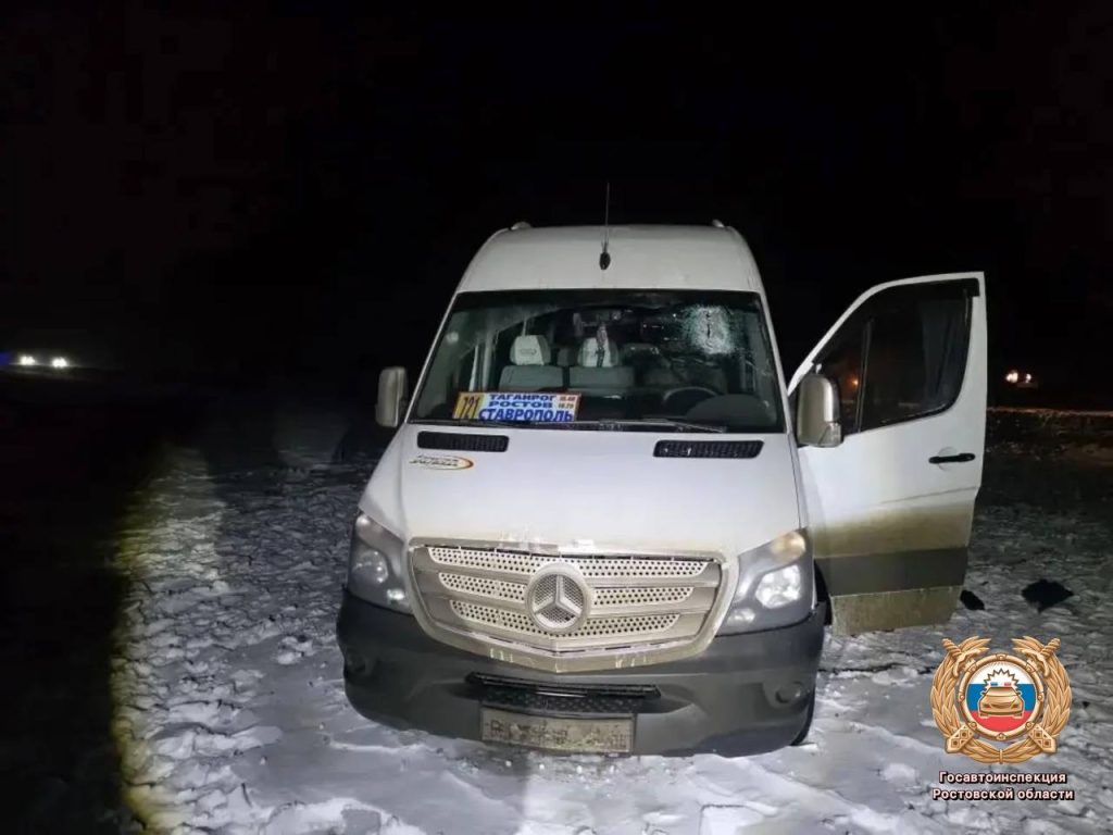 Инцидент случился вечером 22 января на 73-м километре автодороги. По предварительной информации, водитель 1987 года рождения, управлявший автобусом «Мерседес» по маршруту «Ростов – Ставрополь», получил травму от удара предмета (каменного образования) в лобовое стекло. Причина, по которой этот предмет оказался на траектории движения, устанавливается. После удара транспортное средство съехало в левый кювет. Водитель скончался на месте происшествия. В салоне автобуса в момент аварии находились 20 пассажиров, среди них пострадавших нет.
