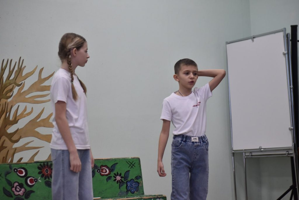 Сцена сельского Дома культуры на час превратилась в волшебный мир, где решались совсем не сказочные проблемы. Главные герои спектакля – брат и сестра Анфиска и Дениска – то и дело ссорились, пока мудрый домовой Кузьма Дормидонтович не отправил их в путь. Цель была заманчивой: найти Жар-птицу и попросить у нее новый планшет взамен разбитого.
