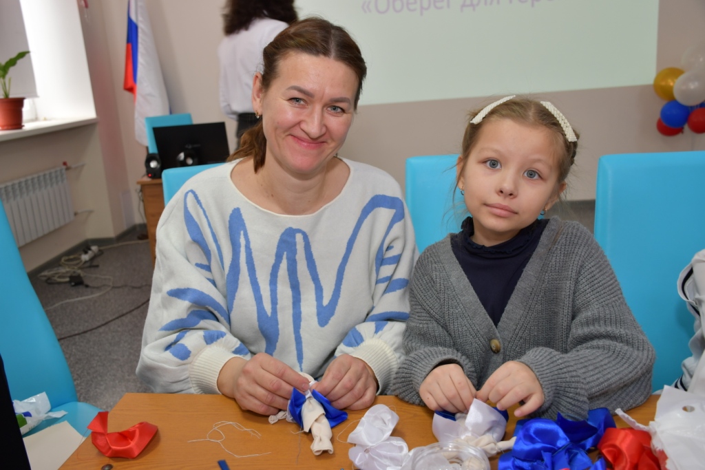 Поучаствовать в создании оберегов ручной работы, которые затем передадут в зону СВО, приехали ученики из разных школ района. Перед началом практической работы участники познакомились с символическим значением каждого элемента создаваемых оберегов. А затем под руководством преподавателей ребята и их родители разделились на две группы. Первая изготавливала куклу-мотанку из лоскутов в цветах российского флага, вторая – саше – небольшие мешочки с ручной вышивкой, внутрь которых вкладывали иконку Георгия Победоносца и ароматный чабрец (степная трава). Процесс увлек всех без исключения – мамы сшивали мешочки и пришивали ленточки, мальчики и девочки наполняли их травой, а ребята постарше постигали нюансы создания кукол.