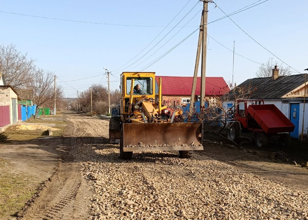 Для восстановления проезжей части подрядчики выполнили грейдирование и отсыпку щебнем на наиболее проблемных участках, где покрытие было сильно повреждено.