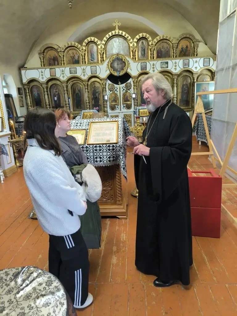 12 марта в Свято-Пантелеимоновском храме поселка Глубокого состоялась беседа настоятеля протоиерея Анатолия Сахно с учениками Глубокинской казачьей школы №1. На встречу, которая была приурочена ко Дню православной книги, пришли ученики 7 классов в сопровождении директора Марины Некрасовой.