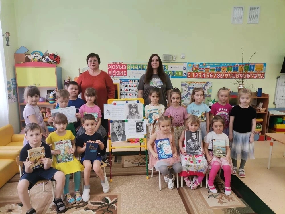 Для ребят из группы «Колокольчики» этот день запомнился не просто чтением вслух, а настоящим литературным путешествием. Библиотекари открыли малышам страницы жизни Петра Васильевича – фронтовика, чьи произведения пропитаны любовью к донской земле. Дети узнали, что «Сказки Тихого Дона» – это первая книга писателя, где народные сказания обрели новую жизнь благодаря его таланту.