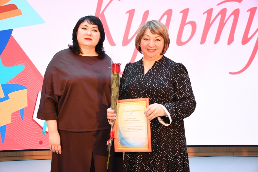 – Работники культуры – люди особенные. Образованные, инициативные, талантливые, с развитым чувством прекрасного и бесконечно влюбленные в свое дело. У вас благородная миссия – сохранять и преумножать самобытную культуру родного края и вовлекать в культурное пространство всех жителей района. Вы щедро отдаете людям богатство своей души, дарите радость общения с прекрасным. Благодаря вашему труду наш район живет интересной жизнью. В прошлом году мы провели большую работу по укреплению материально-технического уровня учреждений культуры, что позволило выйти на более качественный уровень. Желаю вам вдохновения и творческих успехов, – отметил Владимир Анатольевич.