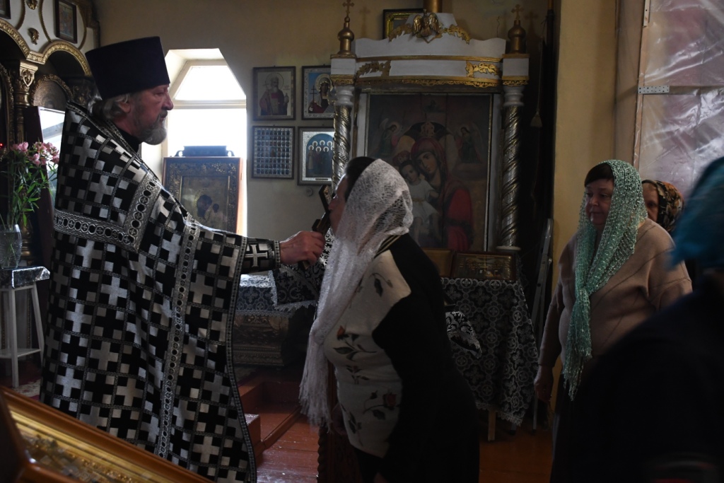 Его Преосвященству сослужили настоятель храма протоиерей Анатолий Сахно и диакон Трофим Осяк. На богослужении молились прихожане храма, жители поселка и ближайших хуторов. Владыка Симон совершил причащение, а в конце вознес молитвы о Святой Руси. Архипастырь преподал прихожанам благословение.