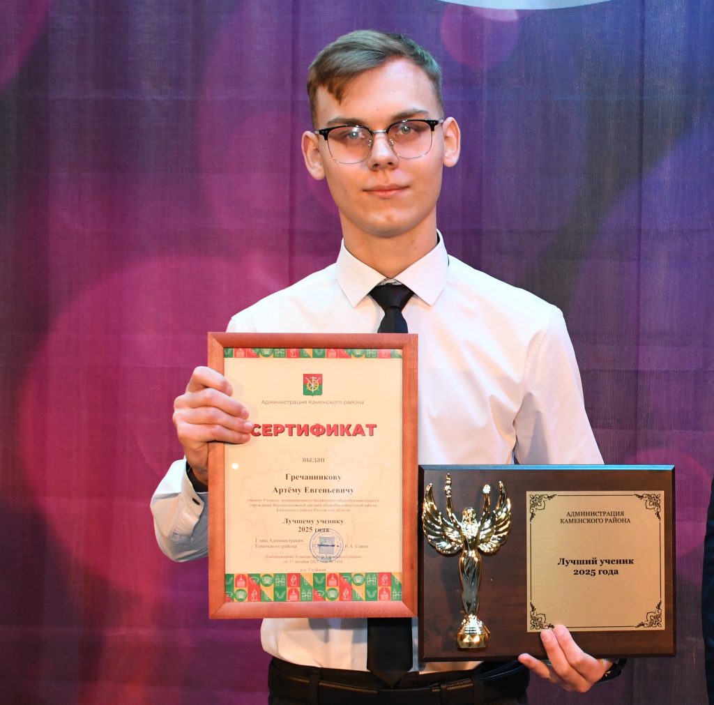 В 2025 году Артем Гречанников был удостоен высокого звания «Ученик года» Каменского района. Эта награда – признание не только его блестящих успехов в учебе, но и активной общественной деятельности, лидерских качеств и целеустремленности. Юноша с первого класса учится на отлично, является победителем школьного этапа Всероссийской олимпиады по многим предметам, а на муниципальном этапе по химии и биологии набрал наибольшее количество баллов.