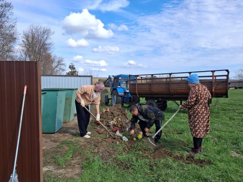 3 апреля, накануне Пасхи, жители хутора Данилов провели уборку на местном кладбище. Они убрали сухую растительность и навели порядок вокруг контейнерных площадок. В тот же день в хуторе Самбуров состоялась экологическая акция с участием работников культуры, специалистов и рабочих ЗАО Агрофирмы «Респект». В результате была очищена центральная часть хутора и придорожная полоса от сухостоя, веток, камней и бытового мусора. 6 апреля активные жители хуторов Первомайский и Груцинов вышли на уборку детской и многофункциональной спортивной площадок. К работе присоединились целыми семьями, включая детей, родителей и старшее поколение.