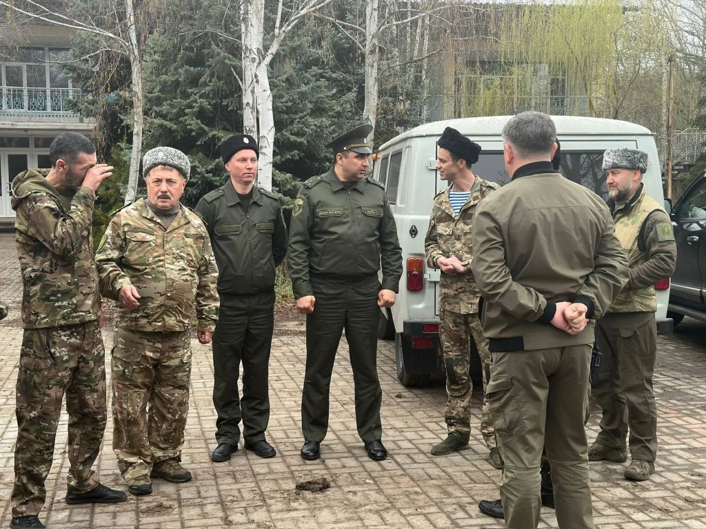 1 и 2 апреля казачий полковник Алексей Сидаков и начальник штаба Глубокинского юрта подъесаул Роман Елфимов в составе губернаторского конвоя побывали в месте дислокации разведывательно-штурмовой десантной бригады «Дон» в Херсонской области (группировка войск «Днепр»).