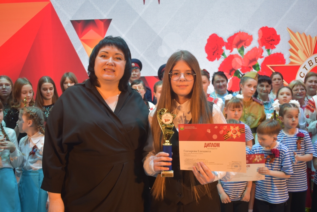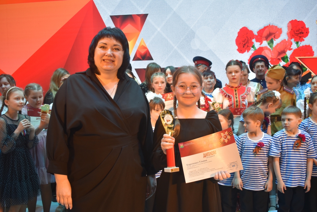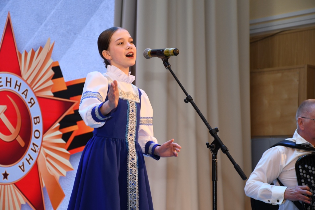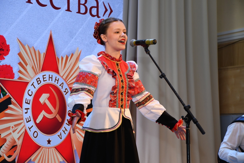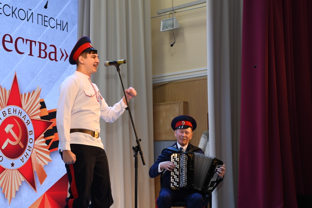 Почти два часа со сцены звучали песни времен Великой Отечественной войны, о Великой Отечественной войне, о Победе, воинской службе, героях наших дней. Каждый номер заслуживал самых громких аплодисментов – восхищало разнообразие репертуара, артистизм и прекрасные голоса исполнителей. В номинации «Народный вокал. Соло» в возрастной категории от 10 до 12 лет и от 13 до 15 лет выступали воспитанницы ДШИ им. Д. Г. Белоусова, девочек подготовила педагог Светлана Попова. Для каждой была выбрана особенная песня, по сути юные вокалистки познакомили нас с новыми песнями, яркими и самобытными. Сильным и уверенным исполнением покорил присутствующих Николай Зарецкий из Калитвенской школы с песней «Казачья призывная». А Максим Жужнев прекрасно исполнил знакомую многим советскую песню «Хотят ли русские войны».