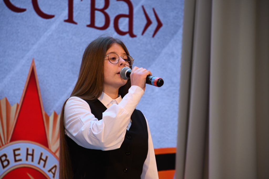 Открывал финал вокальный ансамбль «Сияние» ДШИ им. Д.Г. Белоусова под руководством преподавателя Оксаны Грицуновой с композицей «Русский солдат». Выступление прославленного коллектива задало настроение и высокую планку всем участникам конкурса.