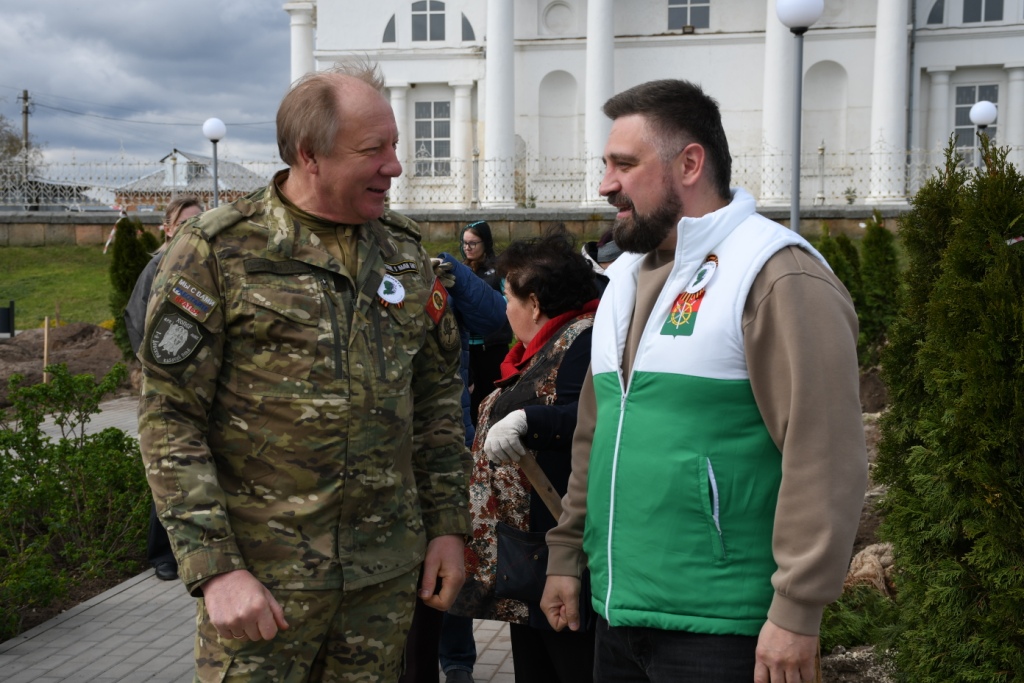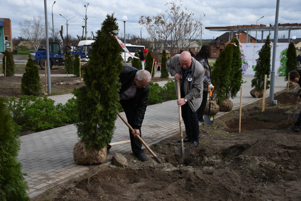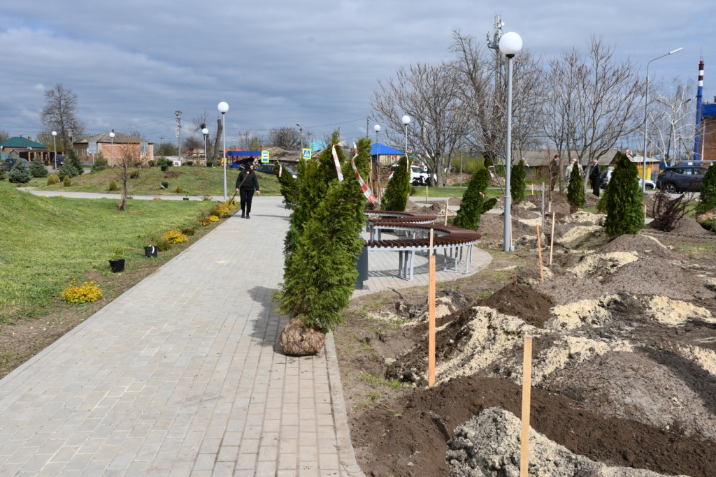 Владимир Савин тепло поздравил калитвенцев и гостей станицы со знаковым мероприятием, отметил большую и планомерную работу станичников по благоустройству, созданию мест отдыха и занятий спортом и призвал подрастающее поколение перенимать эту замечательную эстафету. Поздравления и слова поддержки прозвучали и от депутата ЗС, участника СВО Андрея Курносова. Глава администрации Калитвенского поселения Сергей Разуваев поблагодарил всех, кто пришел поддержать инициативу руководства района и поселения, обозначил фронт работ, и все приступили к работе. Ямы под туи, смесь земли, песка и удобрения под каждый ком были уже приготовлены, поэтому мужчинам оставалось аккуратно посадить растения. Были закуплены довольно большие саженцы с закрытой корневой системой. Расположили туи вдоль тротуарных дорожек по всей территории парка. Можжевельники и спирею высадили на горке и вдоль части дорожек.