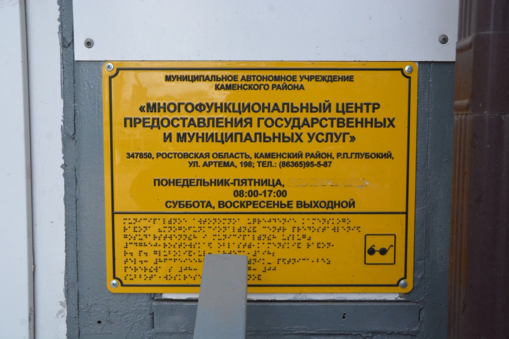 Напомним, программа реализуется в России с 2011 года. Ее главная цель – создать условия для беспрепятственного доступа инвалидов и других маломобильных групп населения к объектам и услугам в приоритетных сферах жизнедеятельности. Ключевой площадкой, где принцип равного доступа к услугам воплощен в жизнь в полной мере, стал многофункциональный центр «Мои документы» в поселке Глубоком. МФЦ Каменского района стал одним из первых учреждений в муниципалитете, где удалось в полном объеме выполнить нормативы программы.