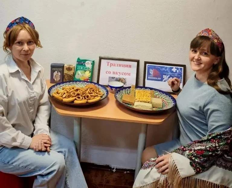 Завершилась встреча традиционным чаепитием в импровизированной «трамвайной» горнице. Гостей угощали взварами, баранками, пряниками, чак-чаком и халвой. Желающие могли проявить кругозор и смекалку, отгадывая загадки разных народов о блюдах и угощениях, а за правильные ответы получали традиционное русское лакомство – хворост.